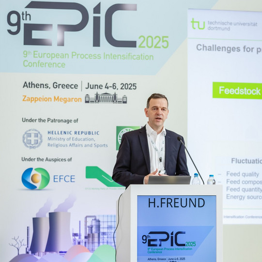 Vom 4.-6. Juni 2025 fand in Athen die EPIC-9 (9th European Process Intensification Conference) statt. Hier hat Hannsjörg Freund im Rahmen eines eingeladenen Plenarvortrags mit dem Titel „Intelligent design of structured catalysts for flexible, safe and efficient reactor operation“ einen Überblick über ausgewählte Forschungsarbeiten des Lehrstuhls präsentiert.